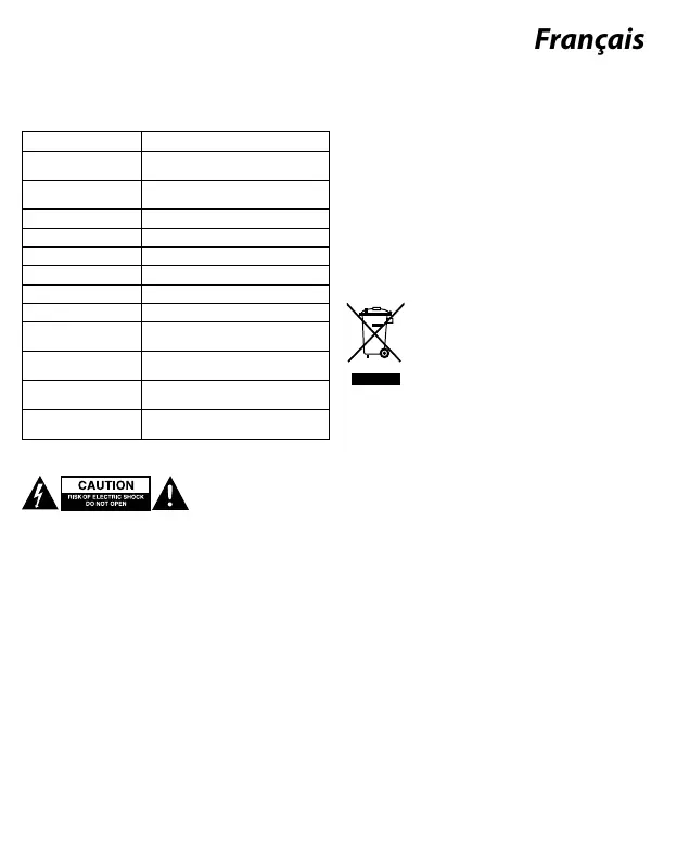 • Pour réduire le risque de choc électrique, ce produit doit être