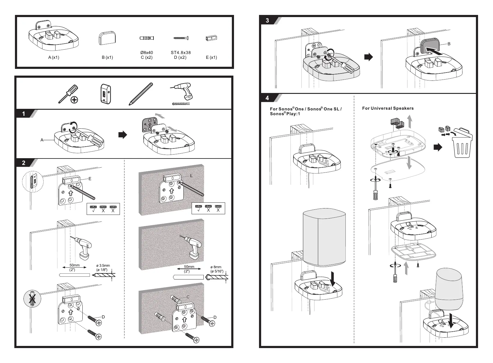 nedis SPMT5600BK - Installation Steps; Parts Identification; Wall Mounting Process; Speaker Bracket Assembly