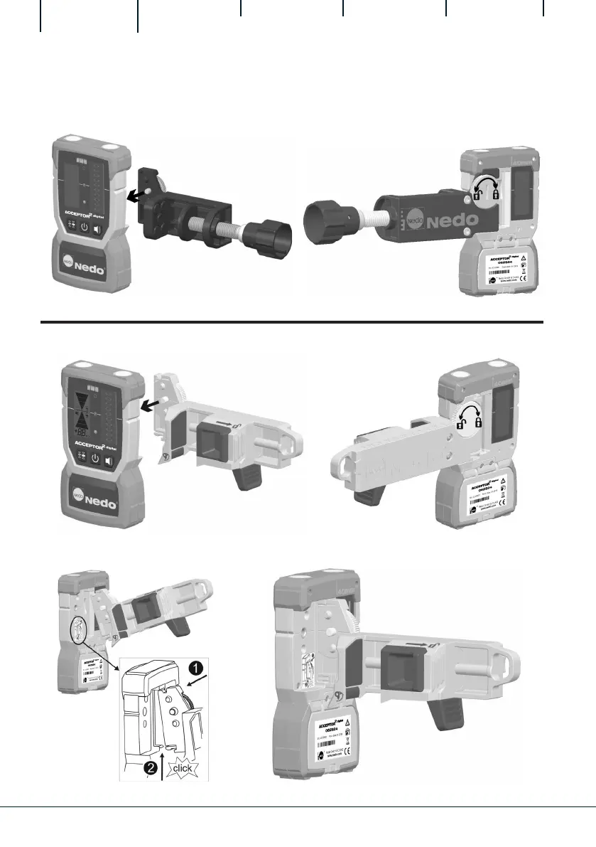 Nedo ACCEPTOR 2 digital - Product Assembly; Attach Rod Clamp to Device; Install Optional Quick Clamp