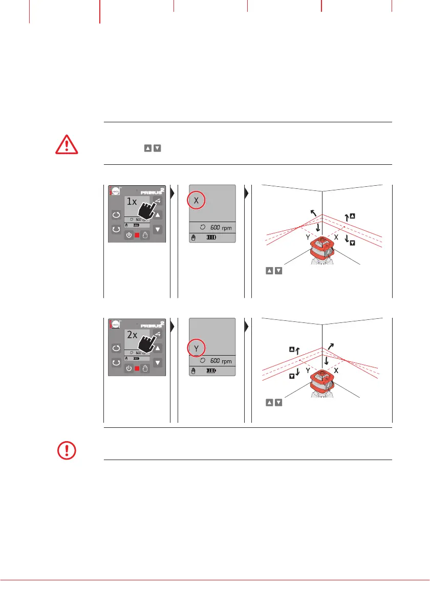 The laser head setting has reached the maximum value ±5°. The rotating laser beam,