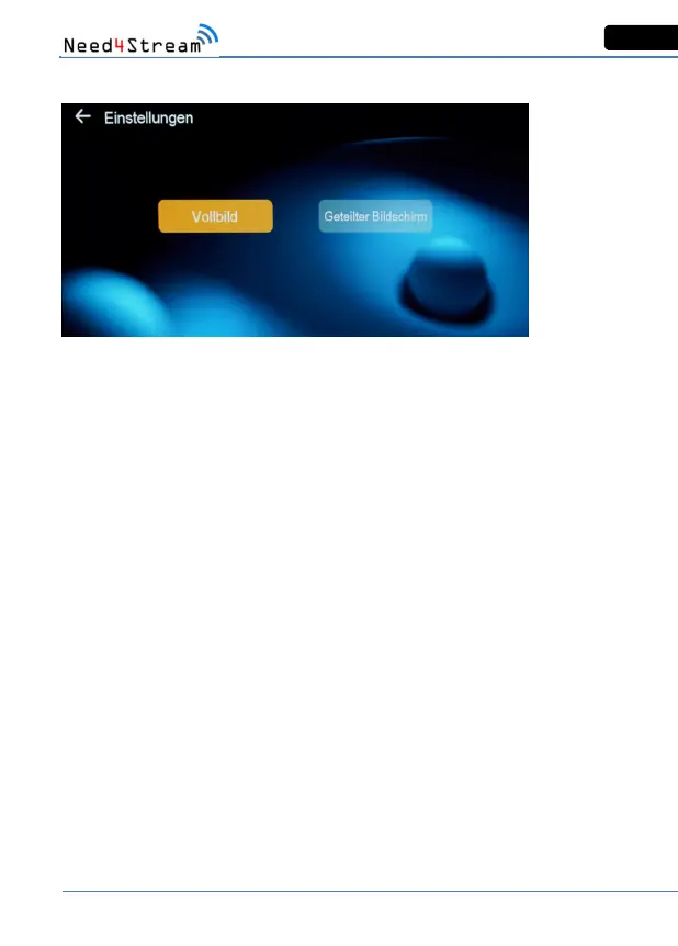 Auswahl zwischen Vollbildmodus oder geteiltem Bildschirm. Letzteres