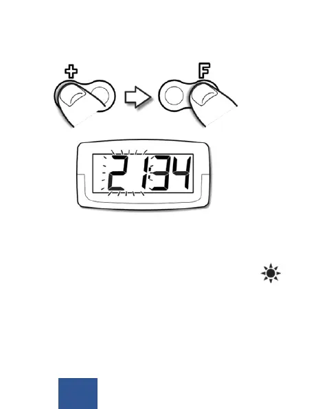 4. Eer a du har inställt klockan, håll knappen F påtryckt