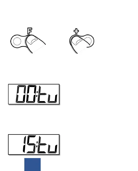 Håll knapp F påtryckt lls det landspecika säet börjar blinka.