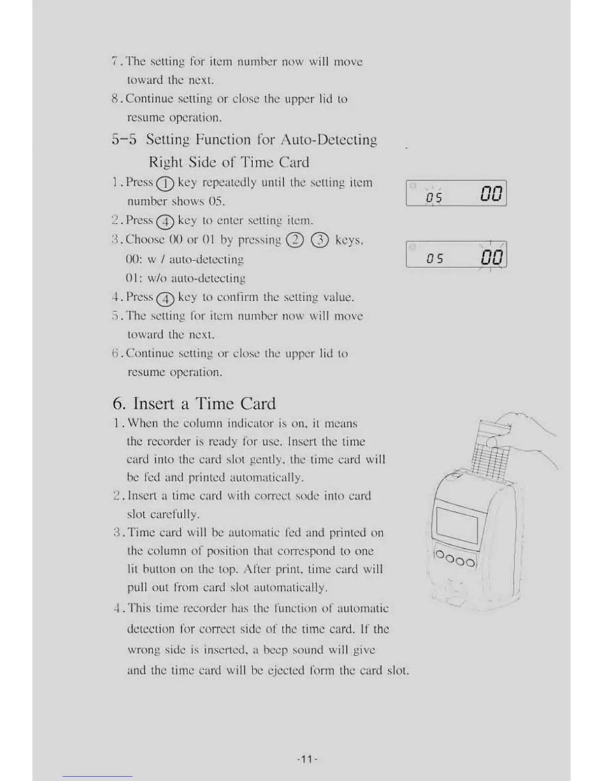 Needtek UT2000 - Auto-Detecting Time Card Side; Operations and Troubleshooting; Inserting a Time Card