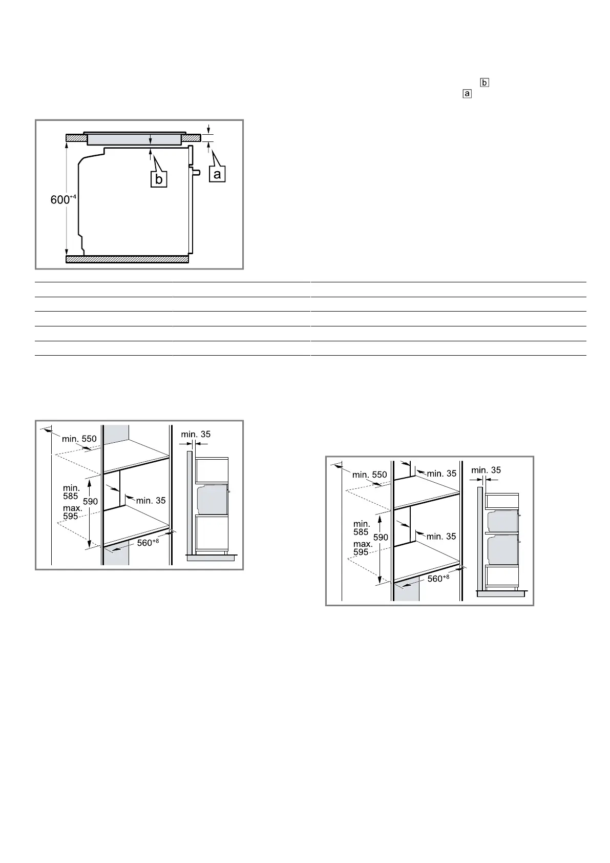 another appliance. Observe the installation dimensions