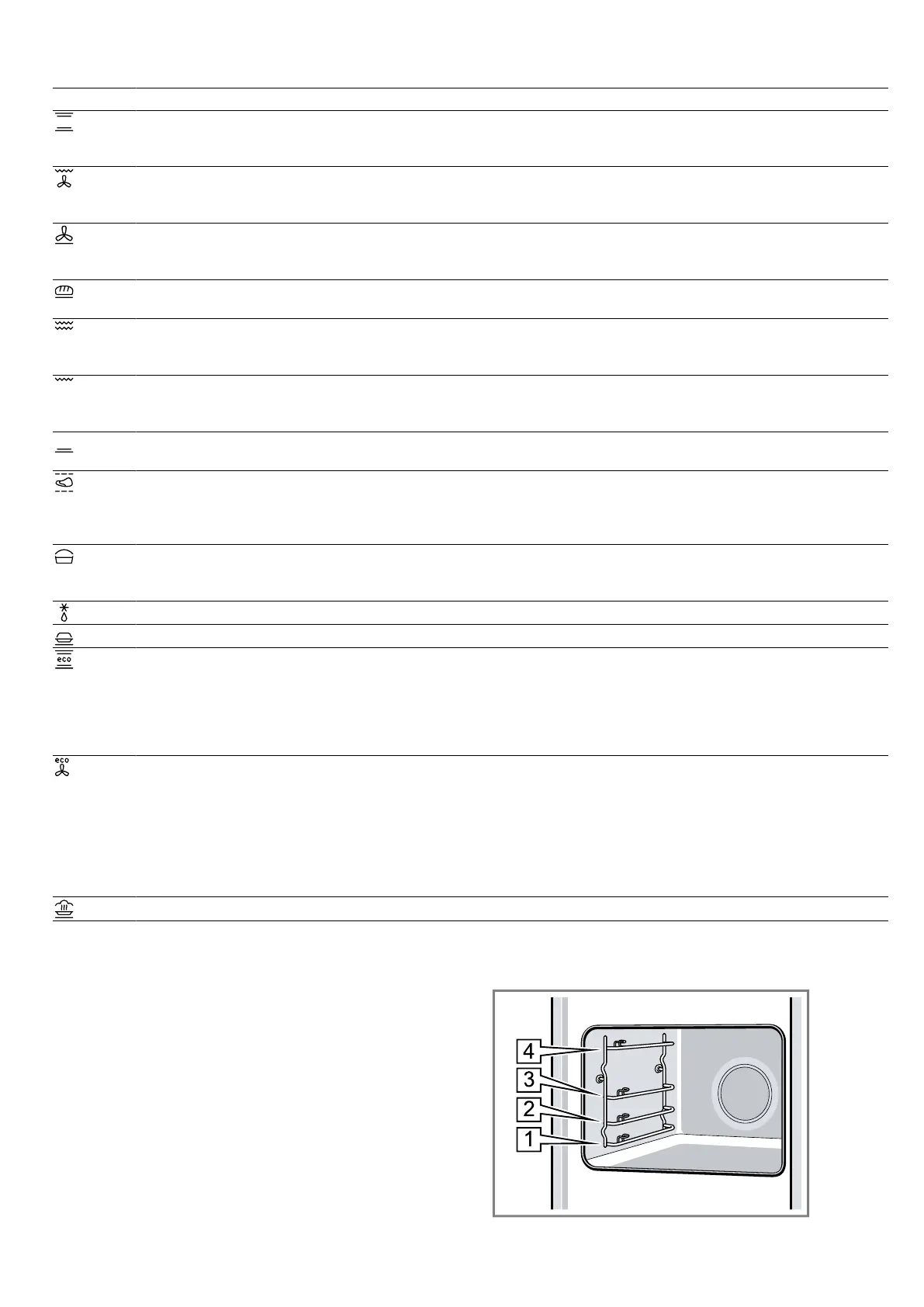 Top/bottom heating 50-275°C Traditionally bake or roast on one level. This type of heating is
