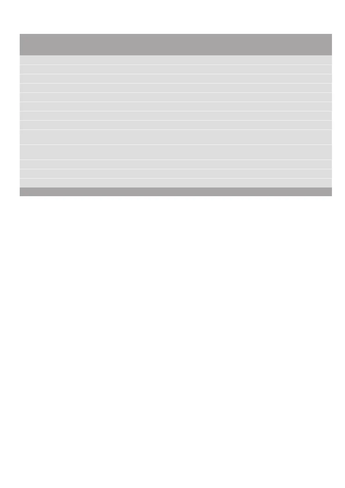 the settings tables, the following basic rule applies: