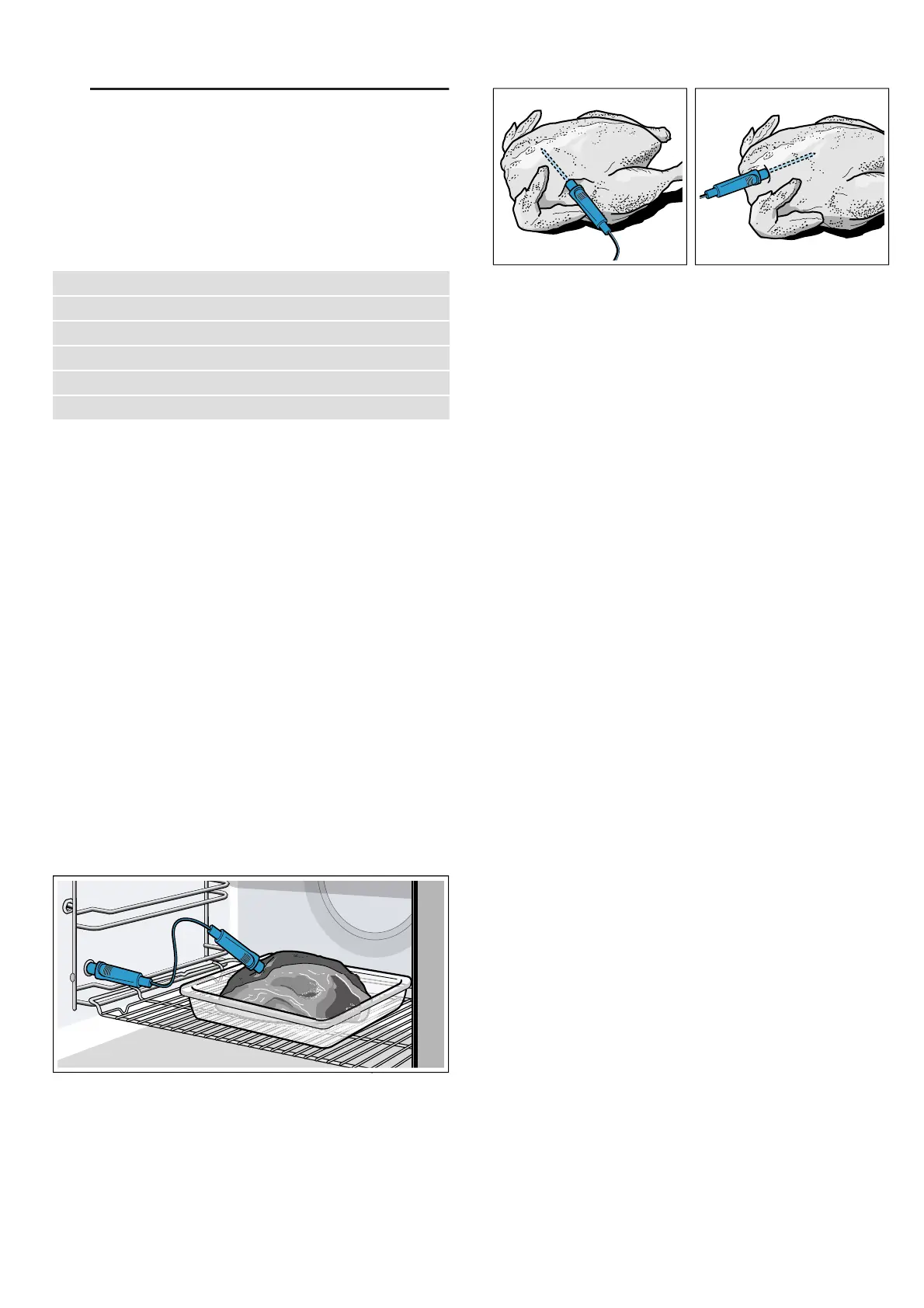 food, check that the meat probe is correctly positioned