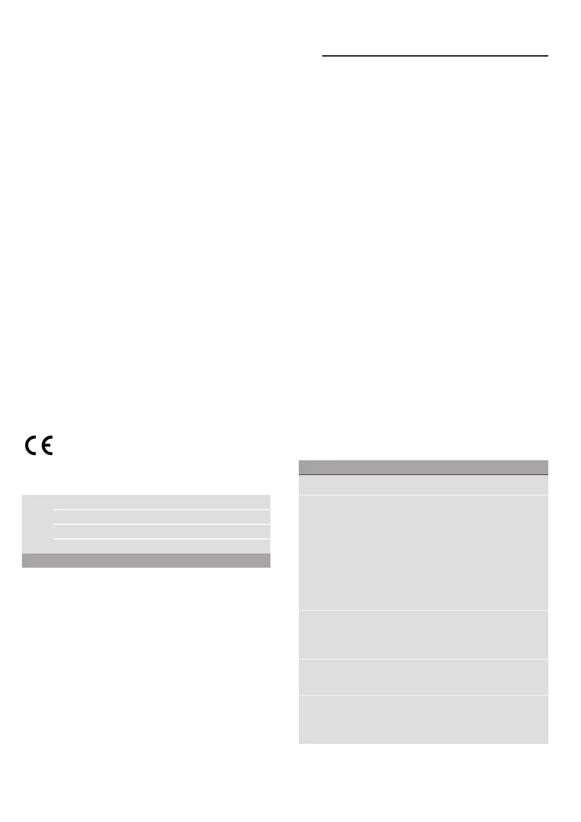 information in the table. Depending on the appliance