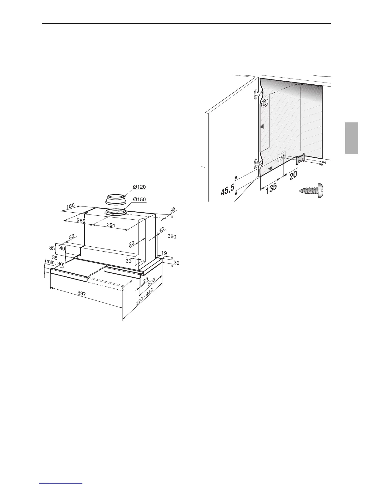 If the cupboard is deeper than 293 mm,
