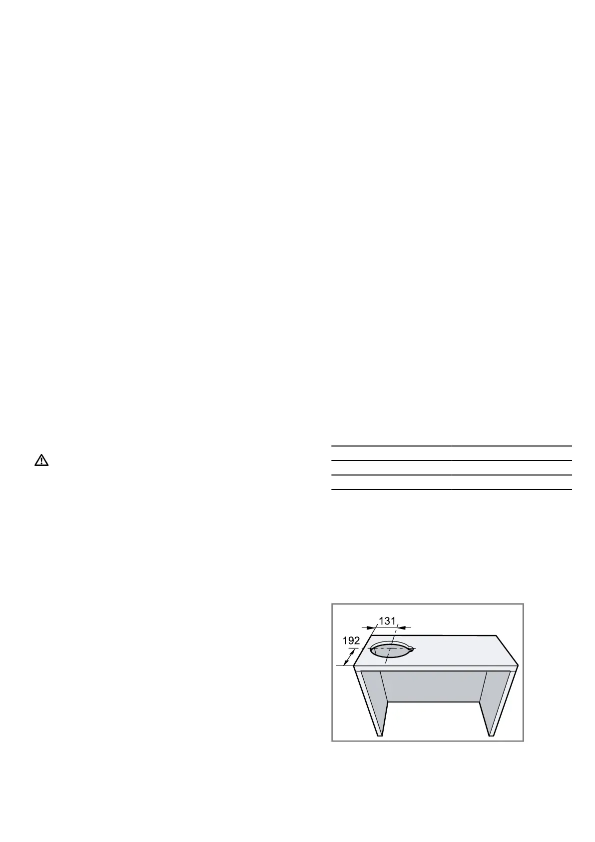 ¡ The width of the extractor hood must correspond at