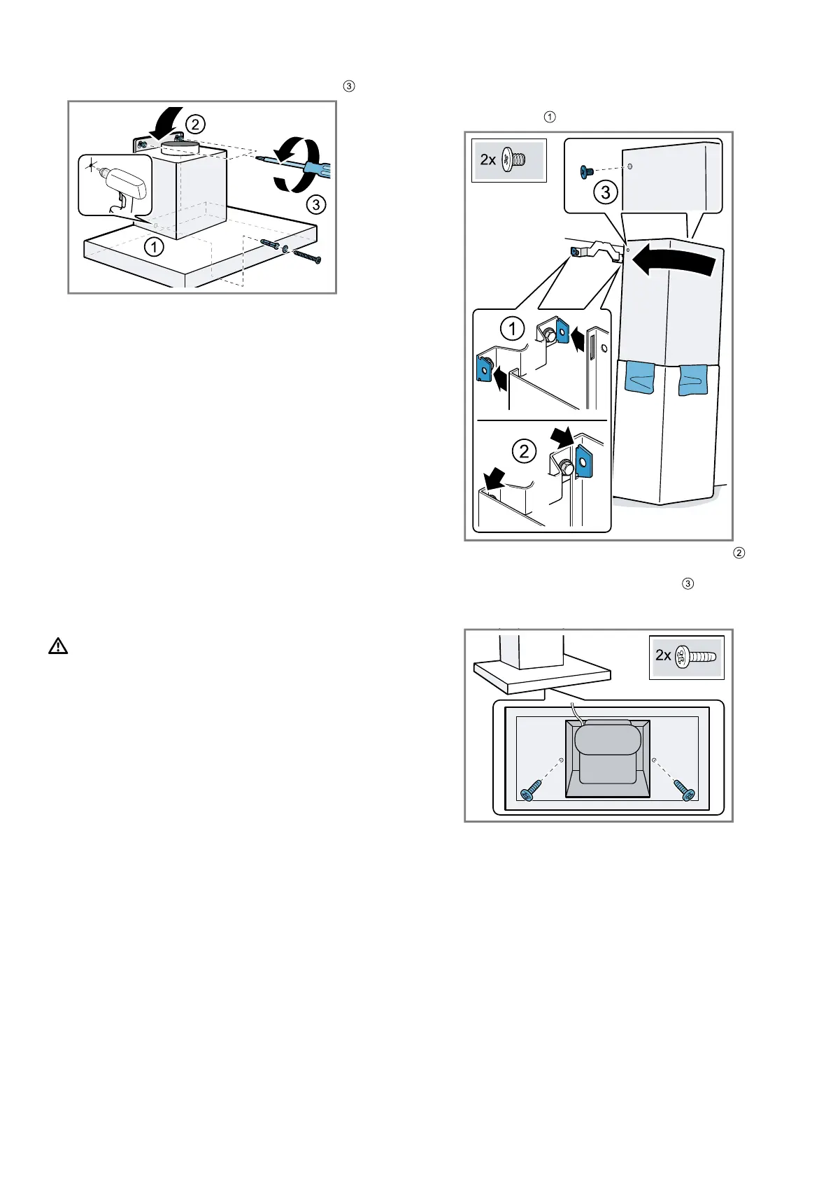 Use two screws to secure the outer flue duct sec-