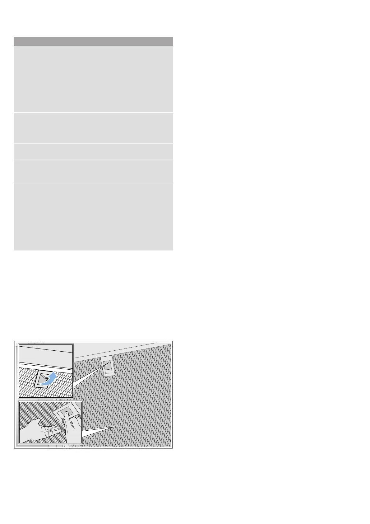 – Hold the metal grease filter level to prevent
