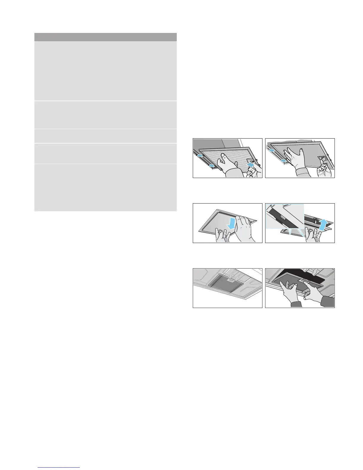 – Hold the metal grease filter level, otherwise