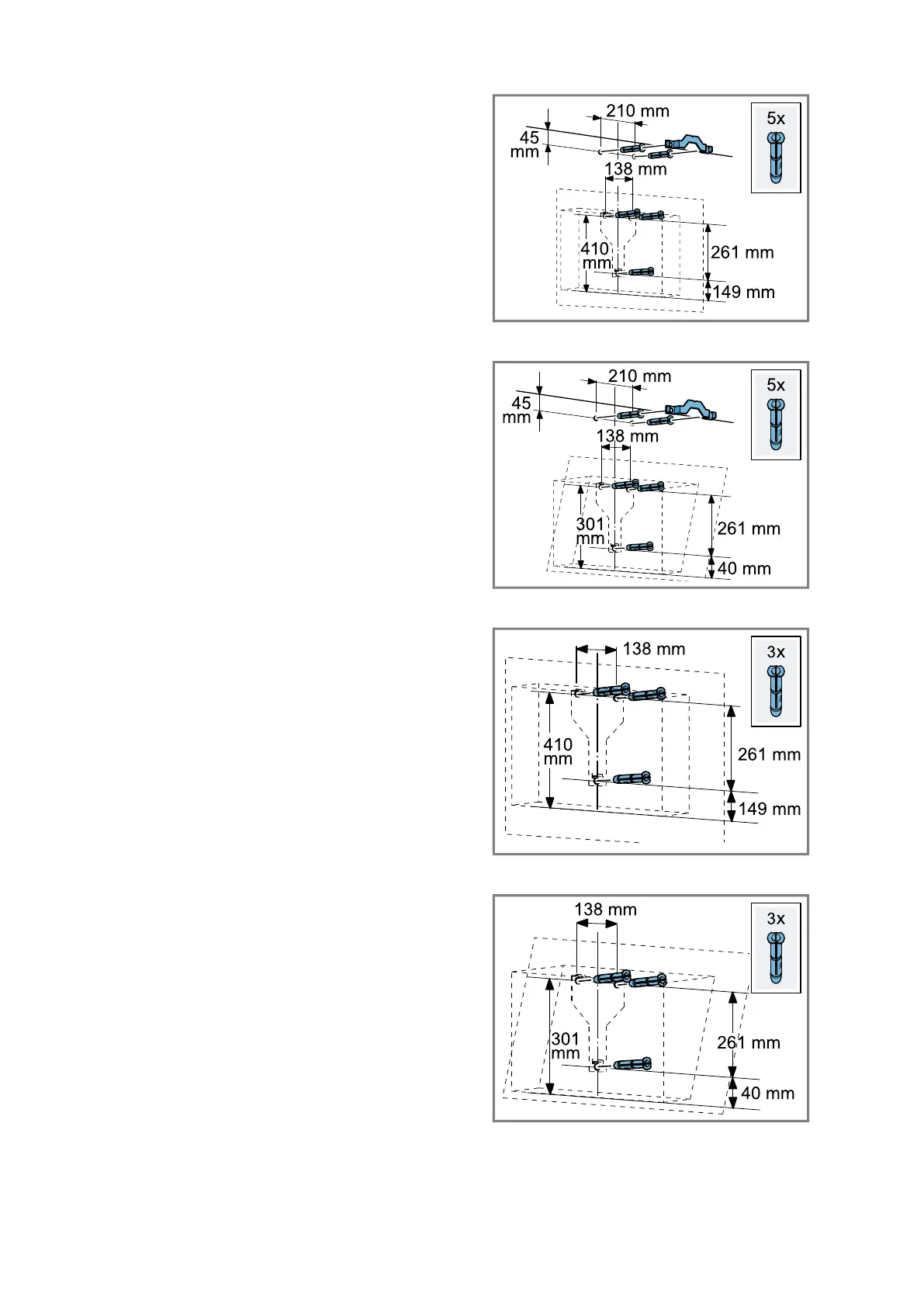 Use the enclosed screws and wall plugs.