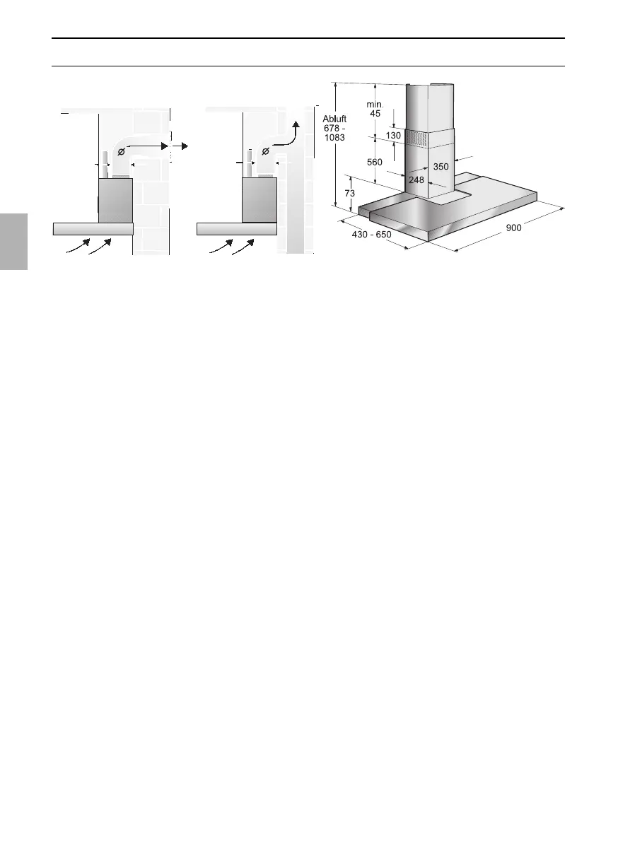 The exhaust air is discharged upwards