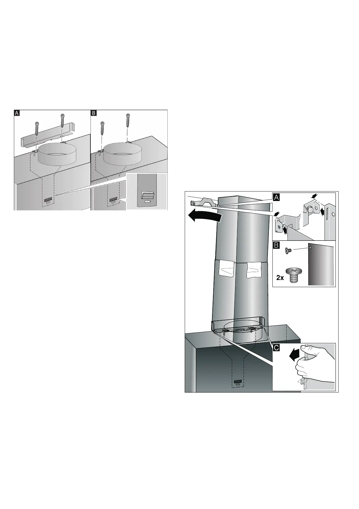 5. If no duct is to be fitted, screw in the two locking