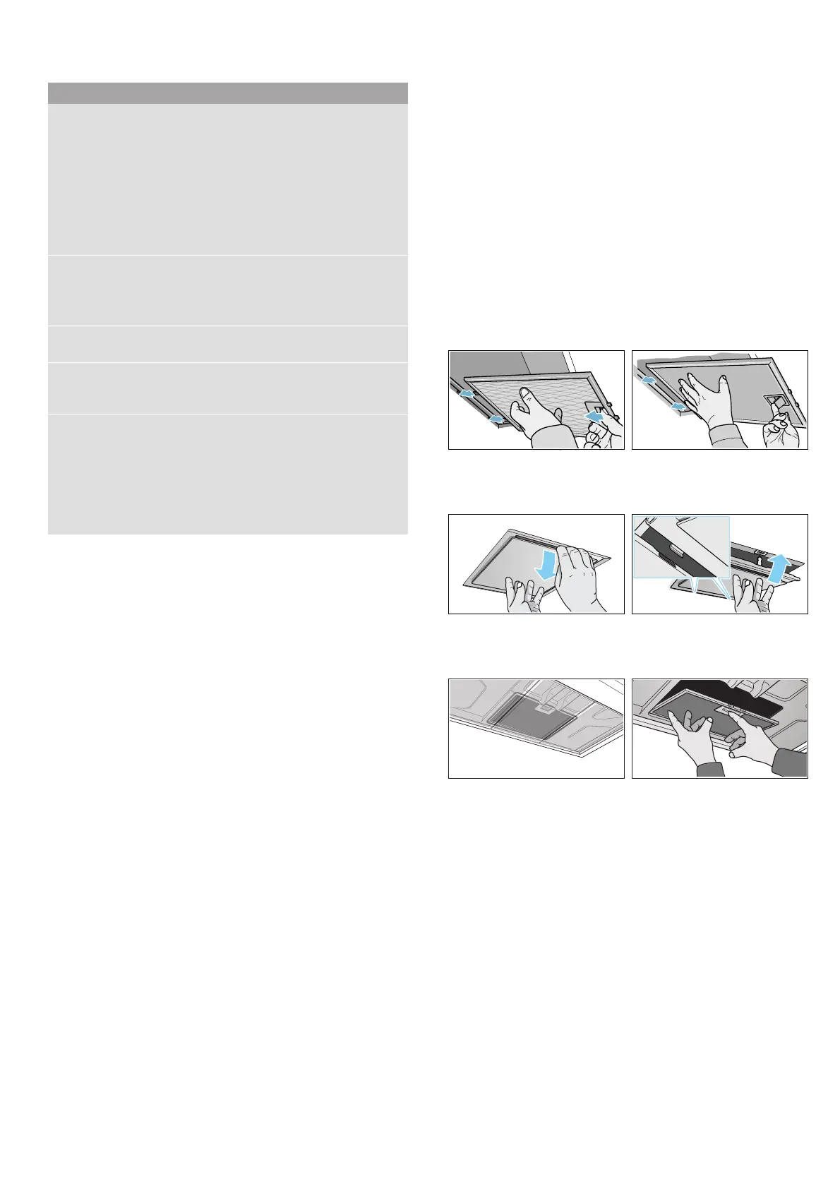 – Hold the metal grease filter level, otherwise