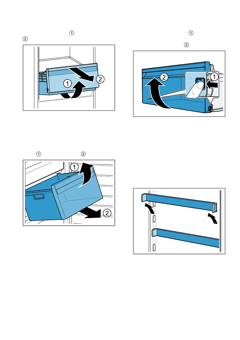 ▶ Lift the door rack rail upwards and