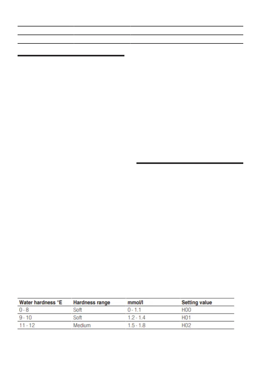 You can find an overview of the water hardness values that can be selected