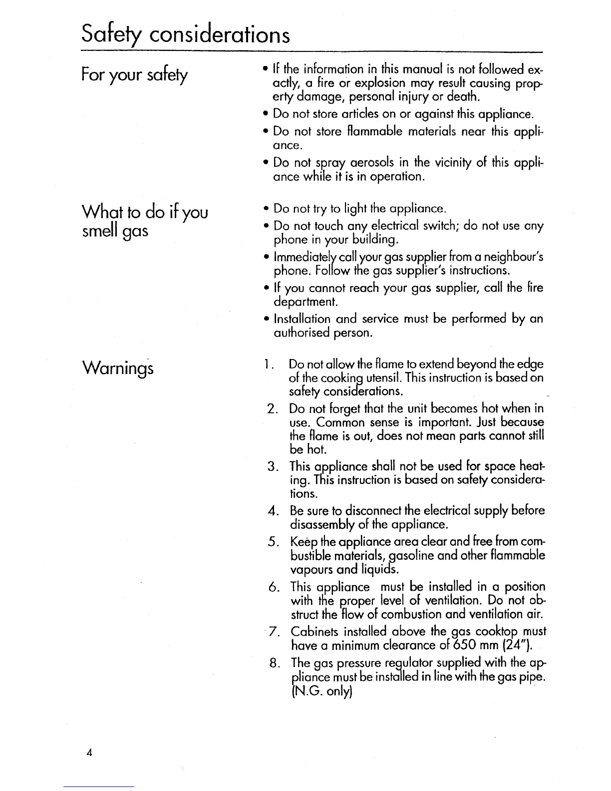 NEFF T2186 - Safety considerations; For your safety; What to do if you smell gas; Warnings