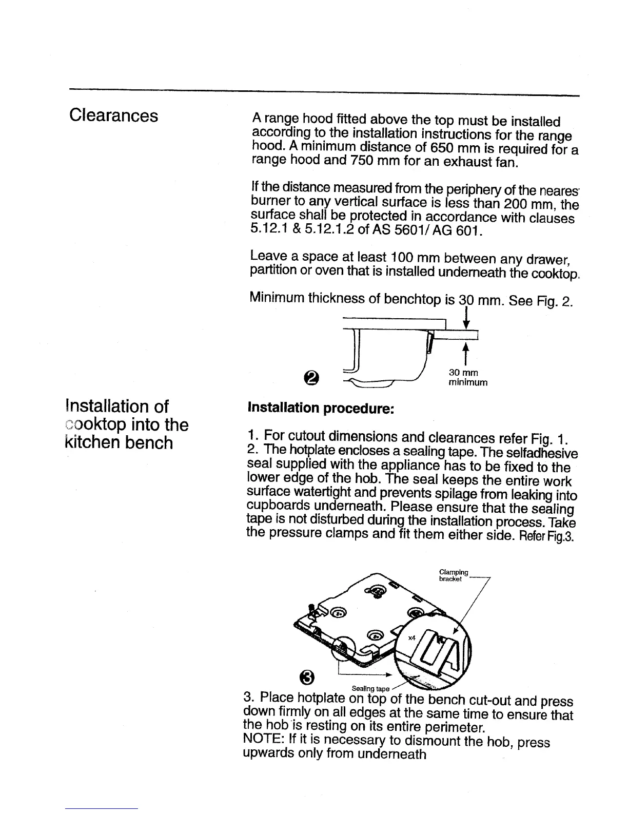 NEFF T2766 - Clearances; Installation of cooktop into the kitchen bench; Installation procedure
