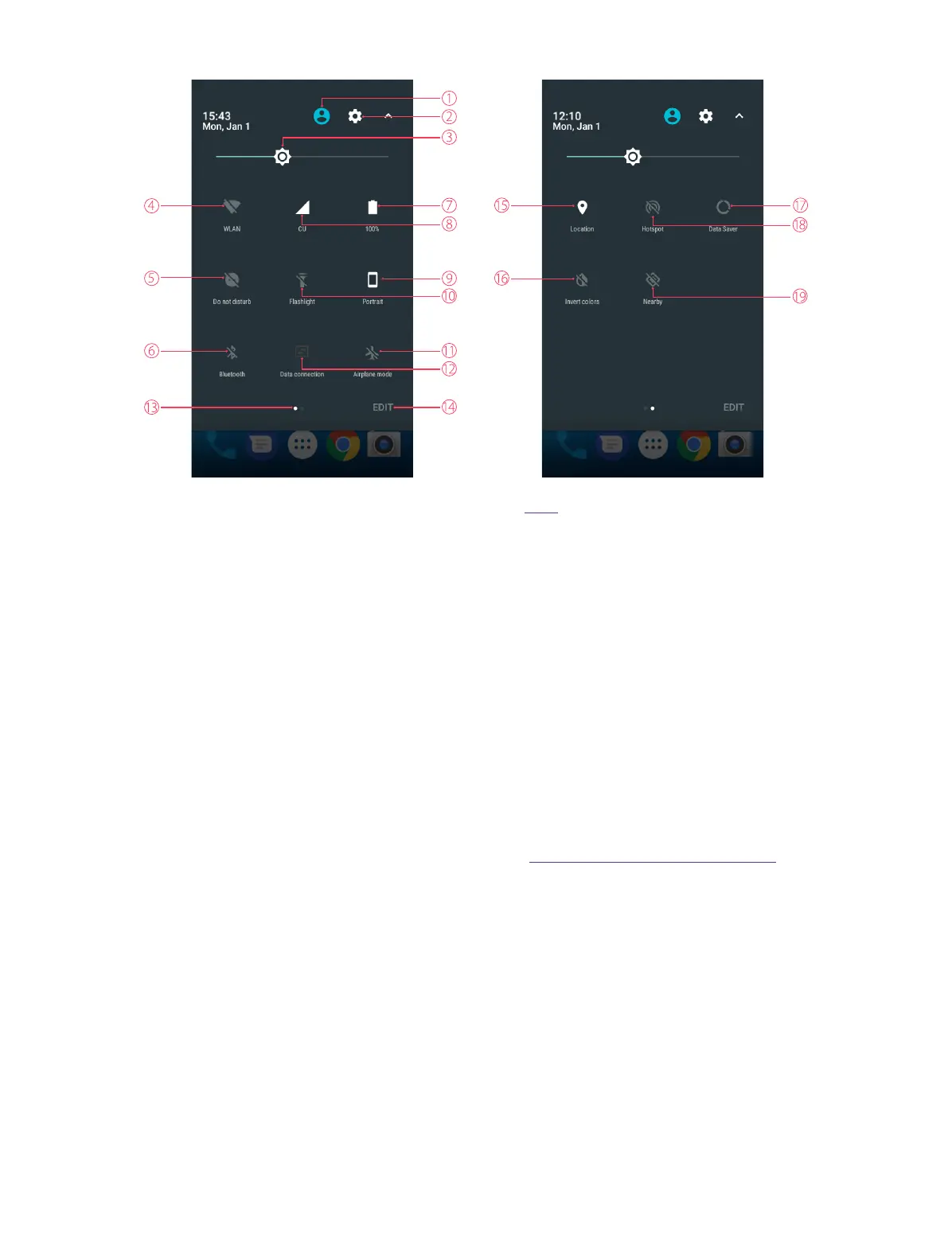 14. Edit: Tap to enter the edit page. For more information, see Adjust the position of shortcut switches.