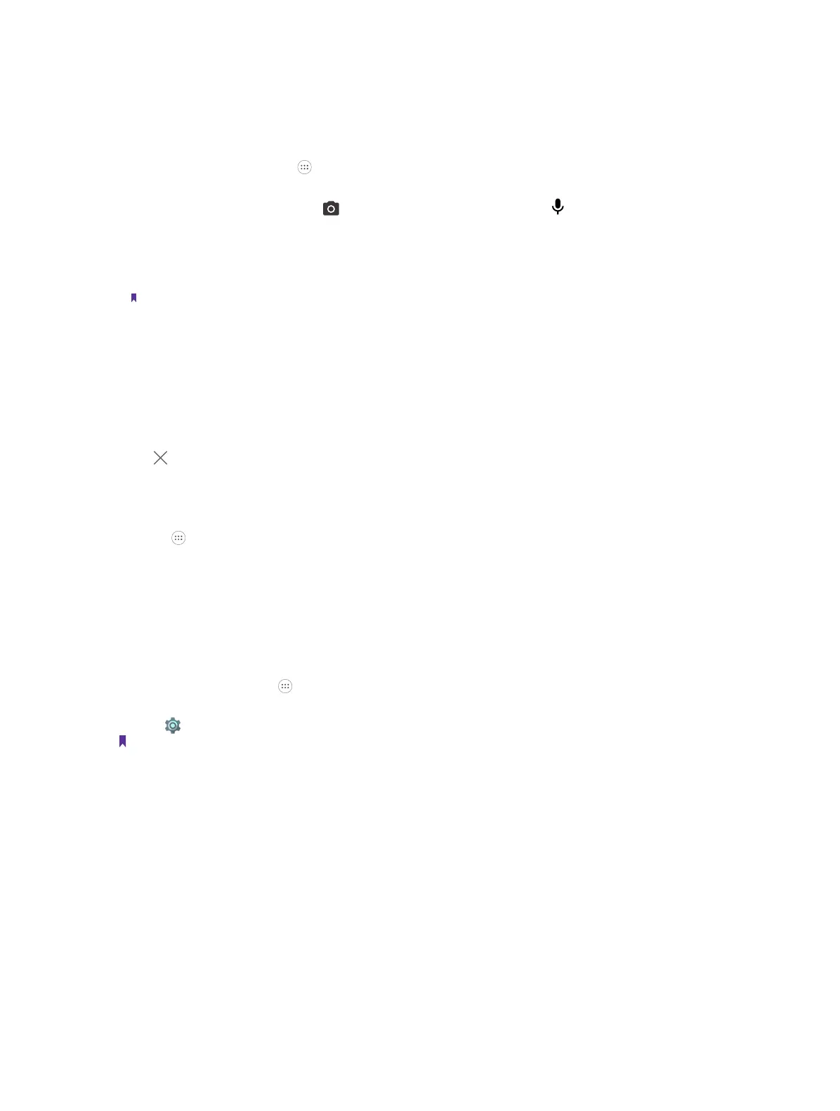 • From the Locked screen: Swipe up to launch the camera application. Tap to launch the Voice search.