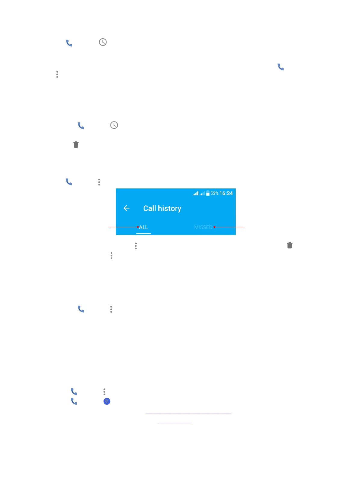 • Delete call history in batches: Tap -> Delete and check the call logs you want to remove, then tap -> OK.