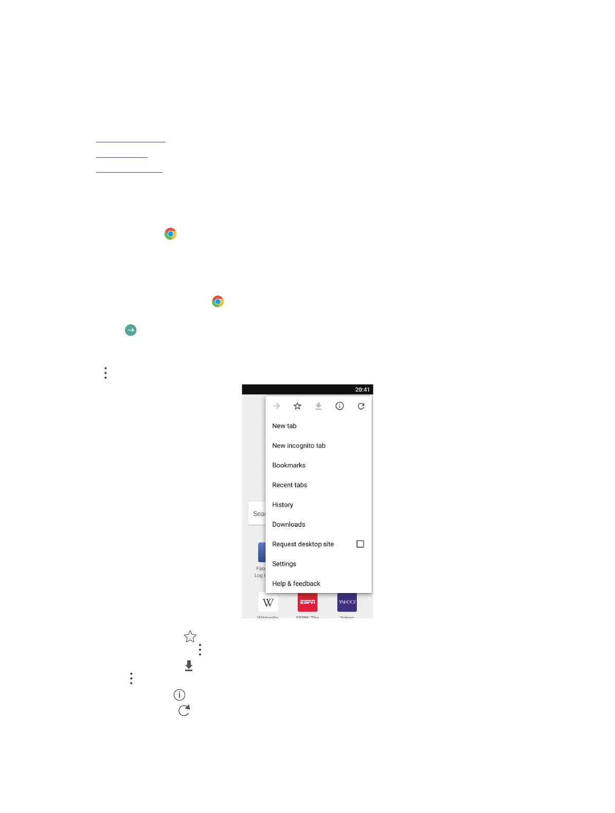 1. On the Home screen, tap Chrome, then tap the address bar and enter the web address you want to