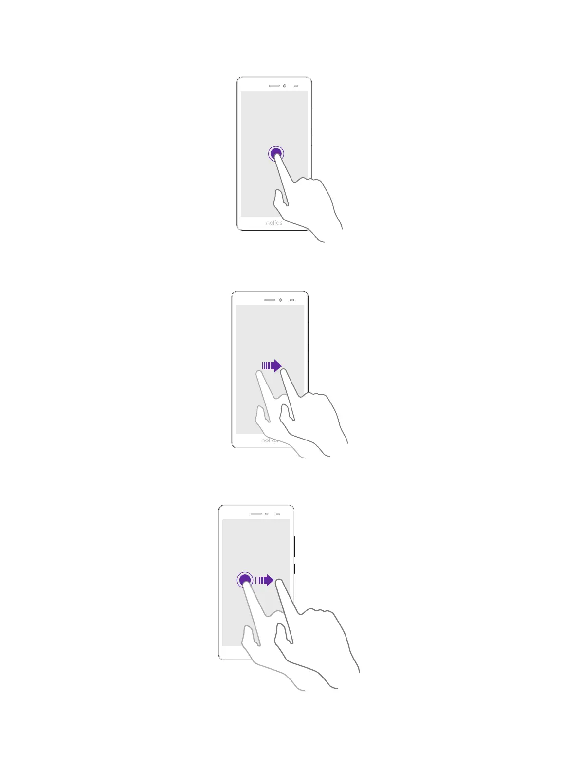 Swipe: Place your finger on the screen, and drag your finger to the direction you want. For example, you can