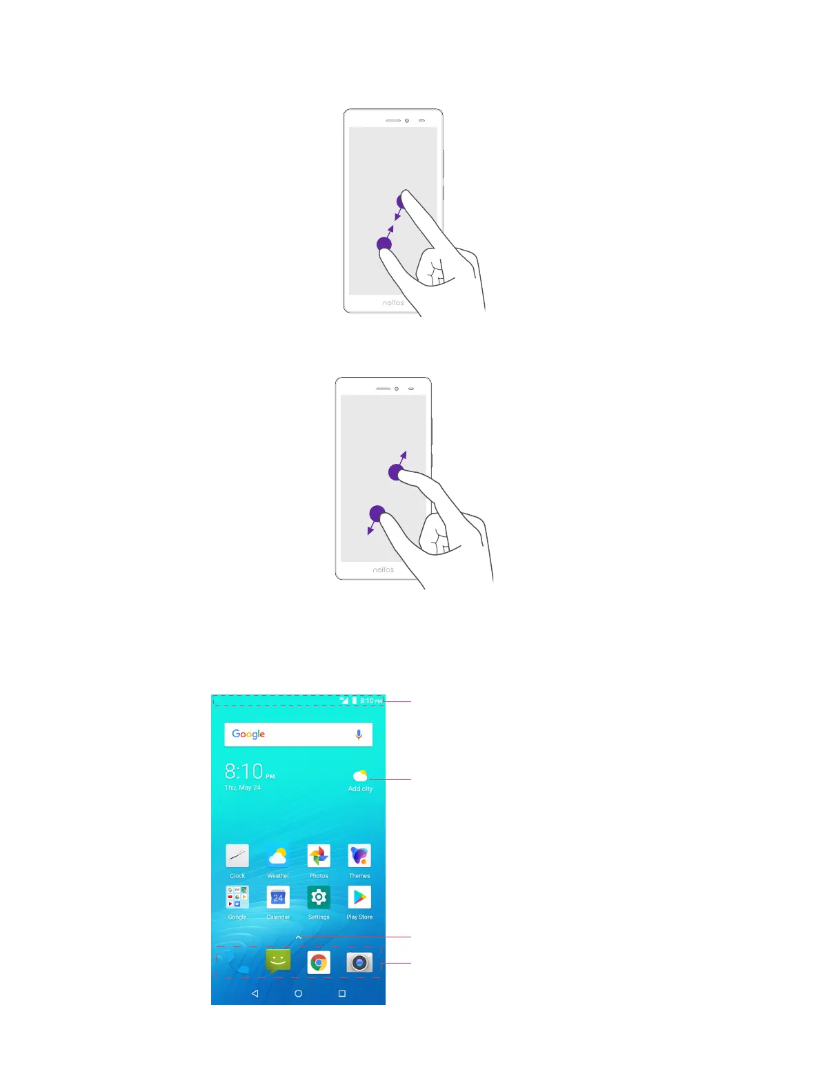 Pinch fingers together: Pinch two fingers together on the screen. For example, pinch two fingers together