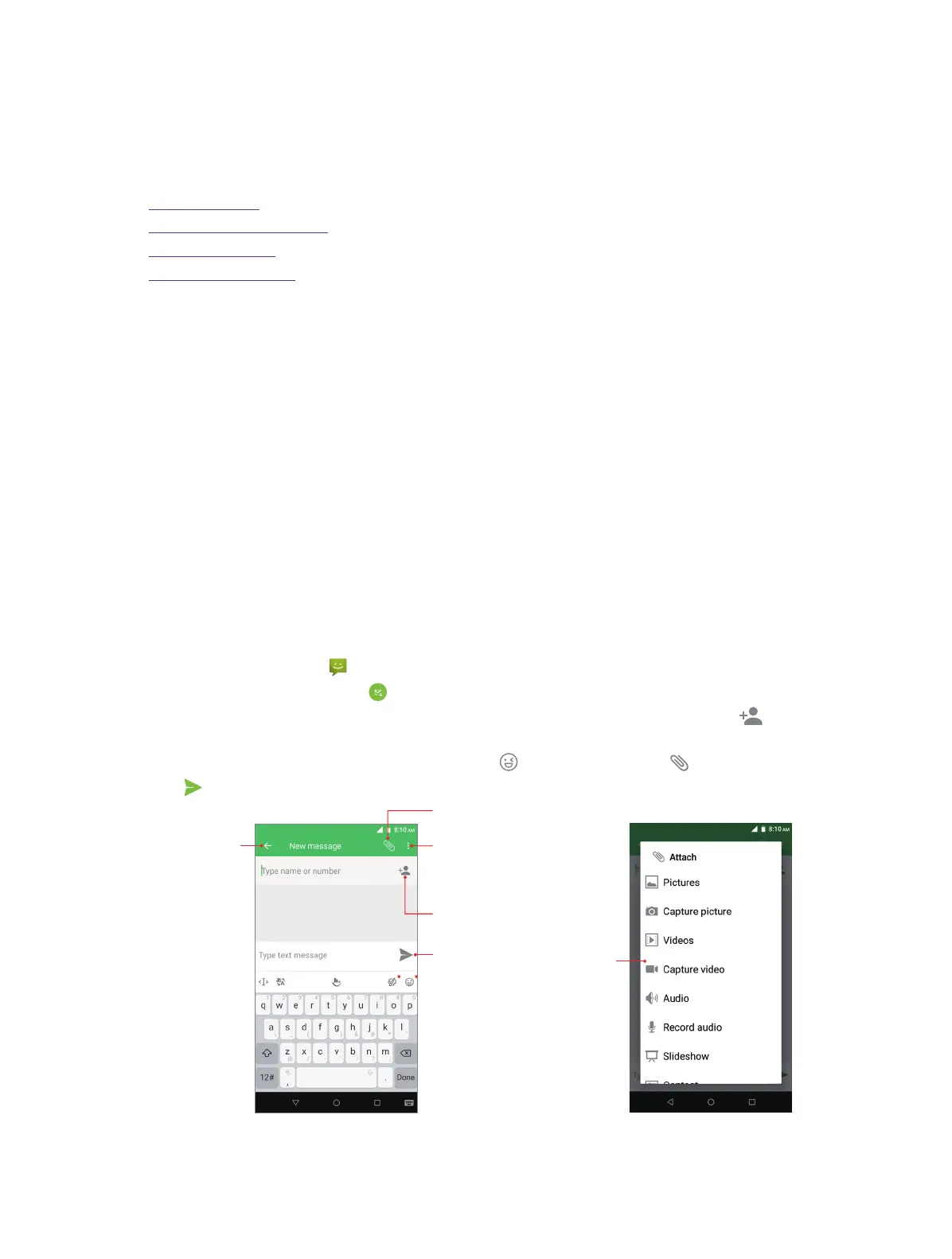 3. Select the recipient box and enter the contact name or phone number. You can also touch to open