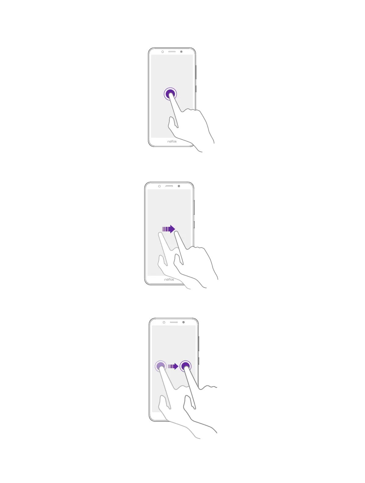 Swipe: Place your finger on the screen, and drag your finger to the direction you want. For example,