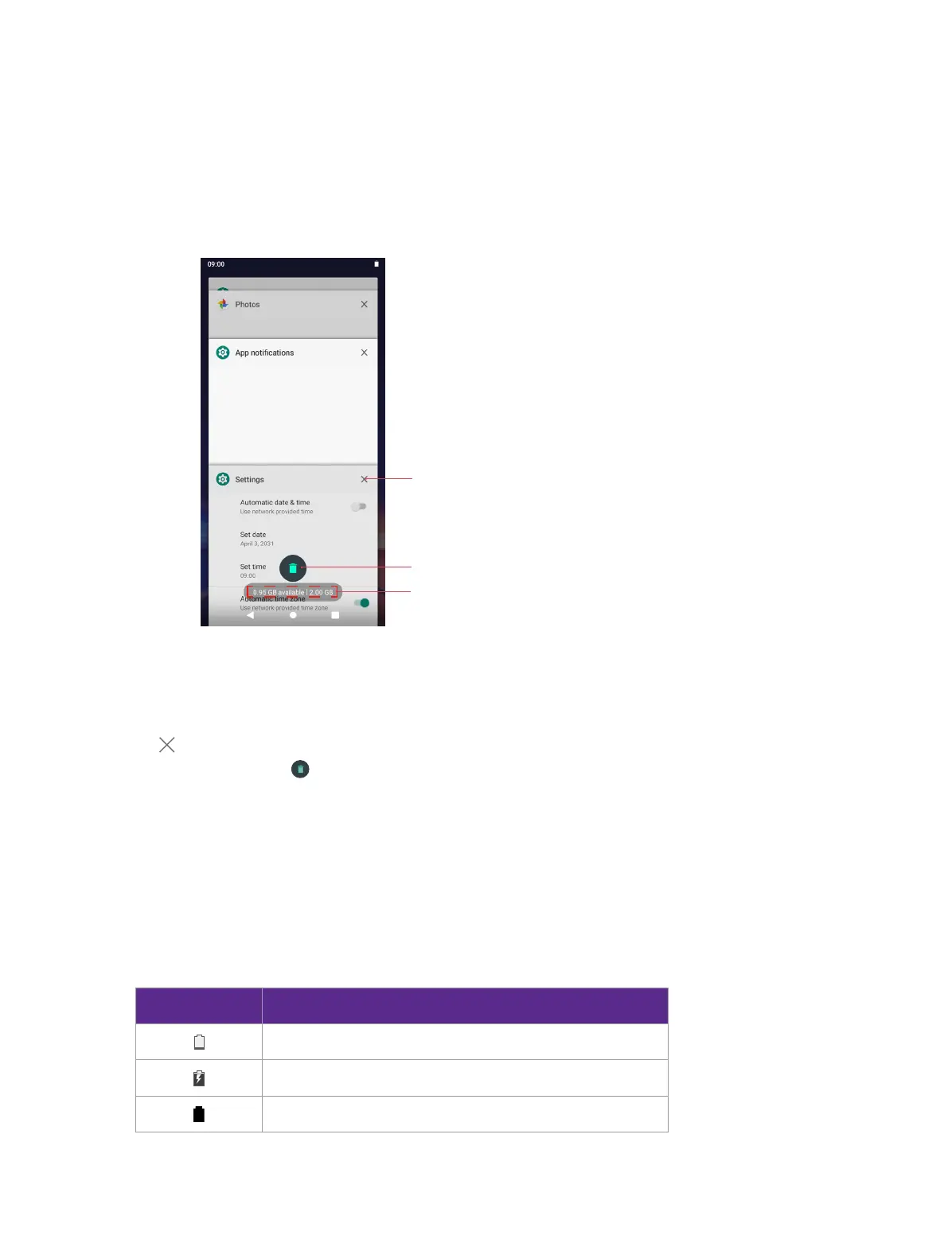 • Close an app: Swipe left or right on a thumbnail to close the corresponding app, or you can tap