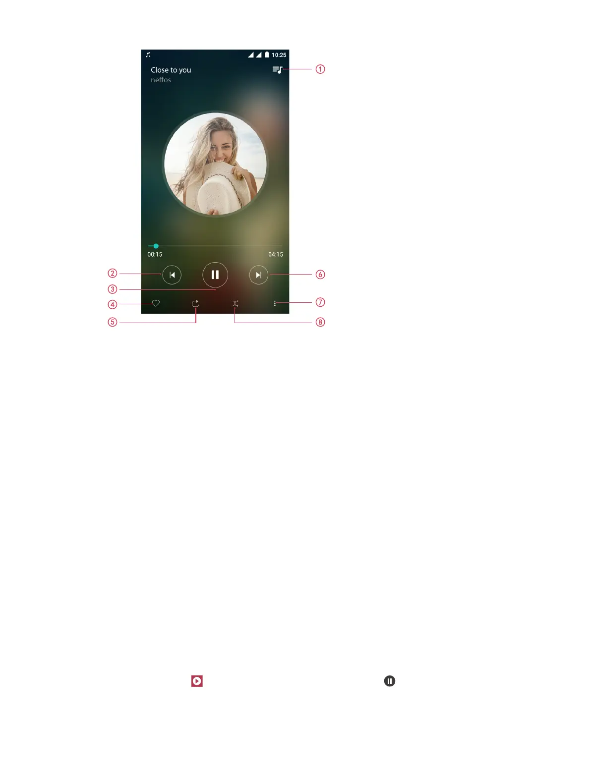 To return to the music playback screen, open the notification panel and touch the song that is playing.