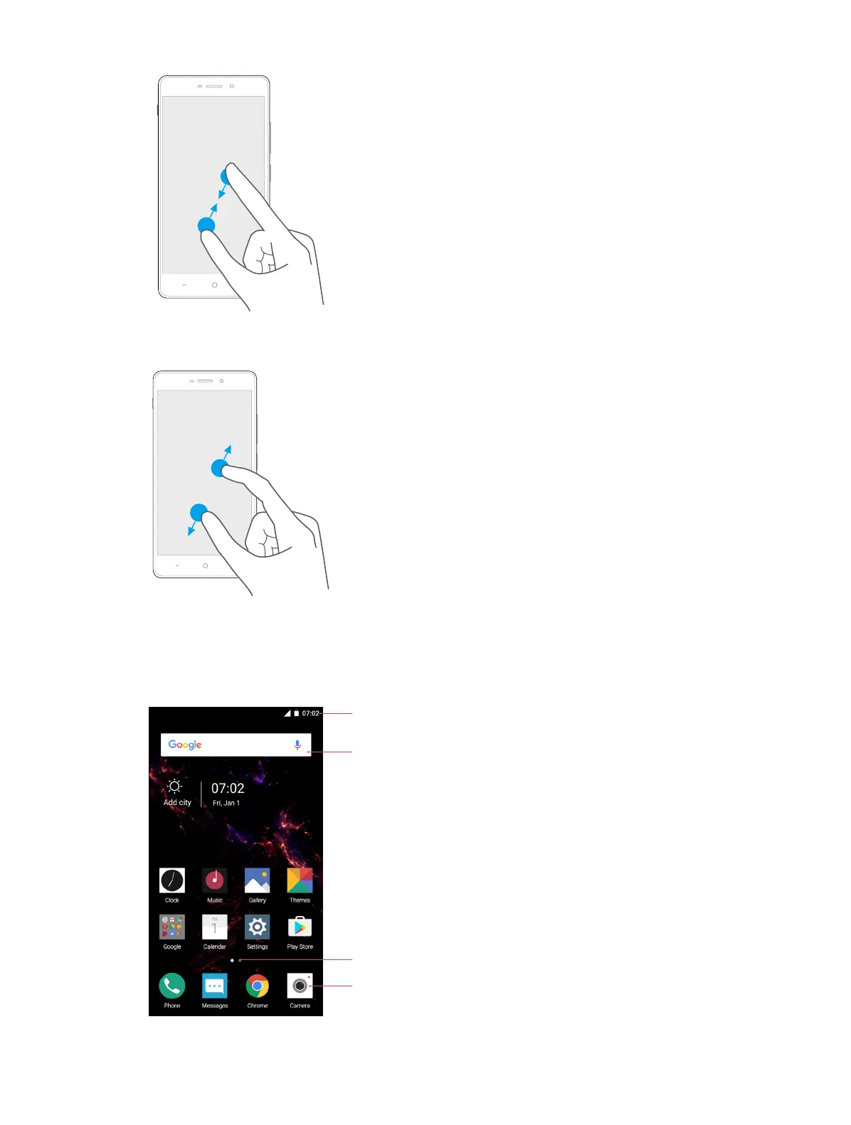 Zoom in: Spread two fingers apart on the screen. For example, pinch two fingers out to zoom on a picture or