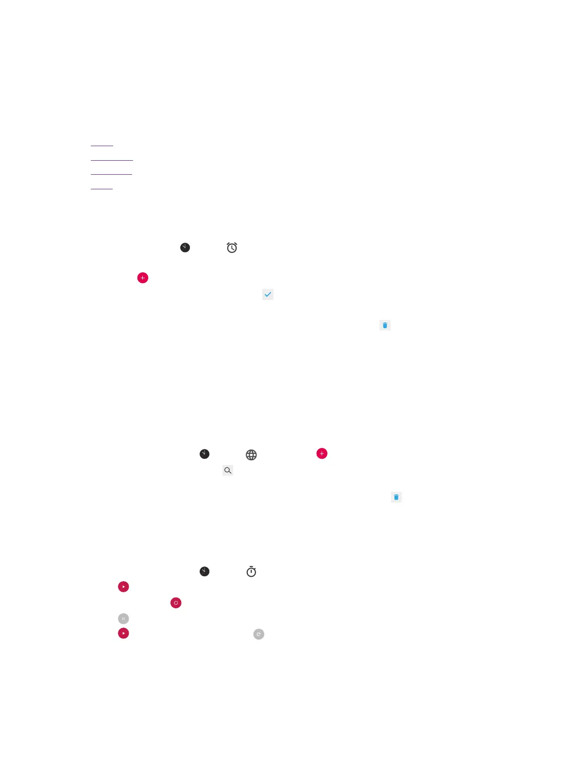 • Delete an alarm: Tap and hold the alarm you want to delete and then tap
