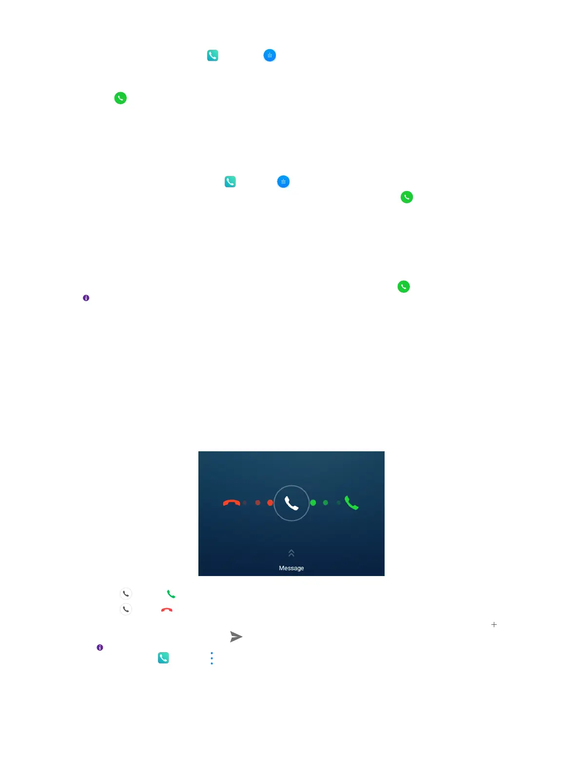 • Slide up Message to reject the call and send SMS. You can choose a quick response or tap