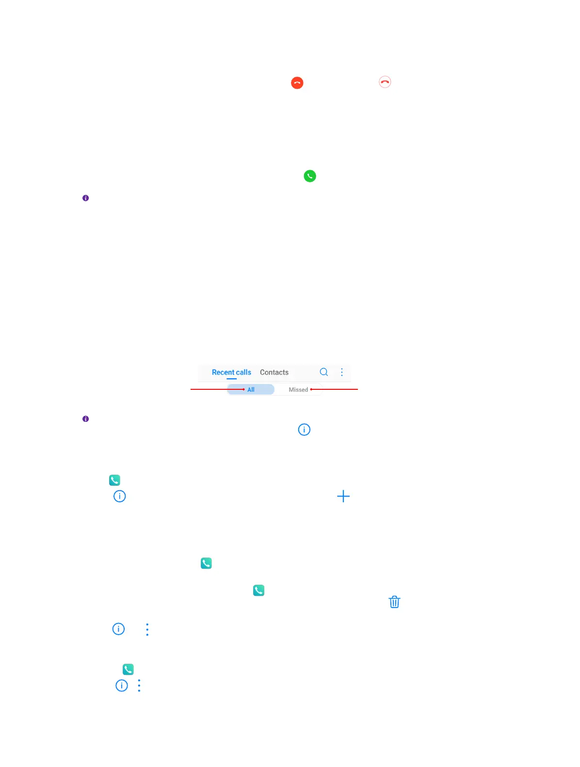 • Delete call history in batches: Go to Phone -> Recent calls, touch and hold a number or a