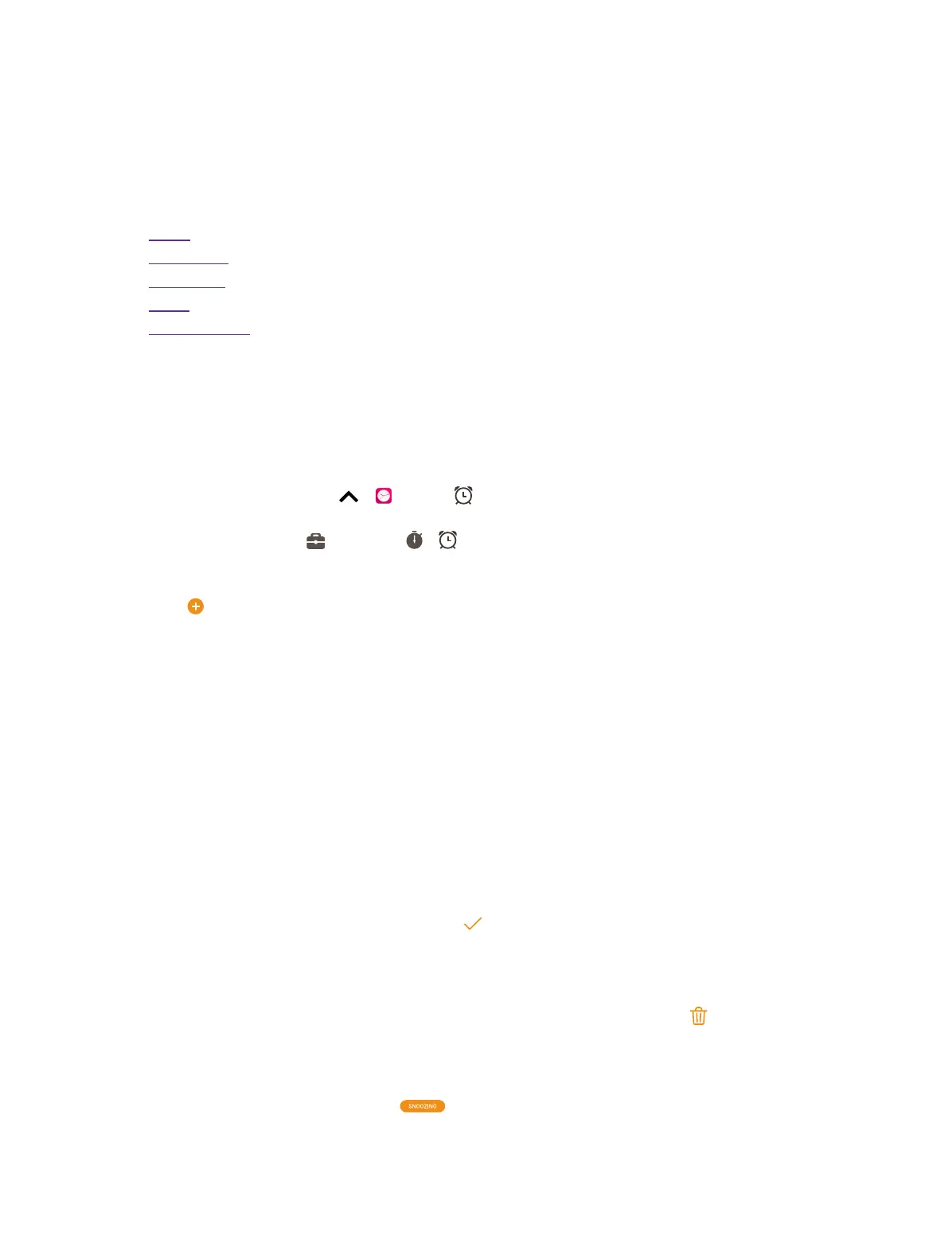• Delete an alarm: Touch and hold the alarm you want to delete and then tap > DELETE. You