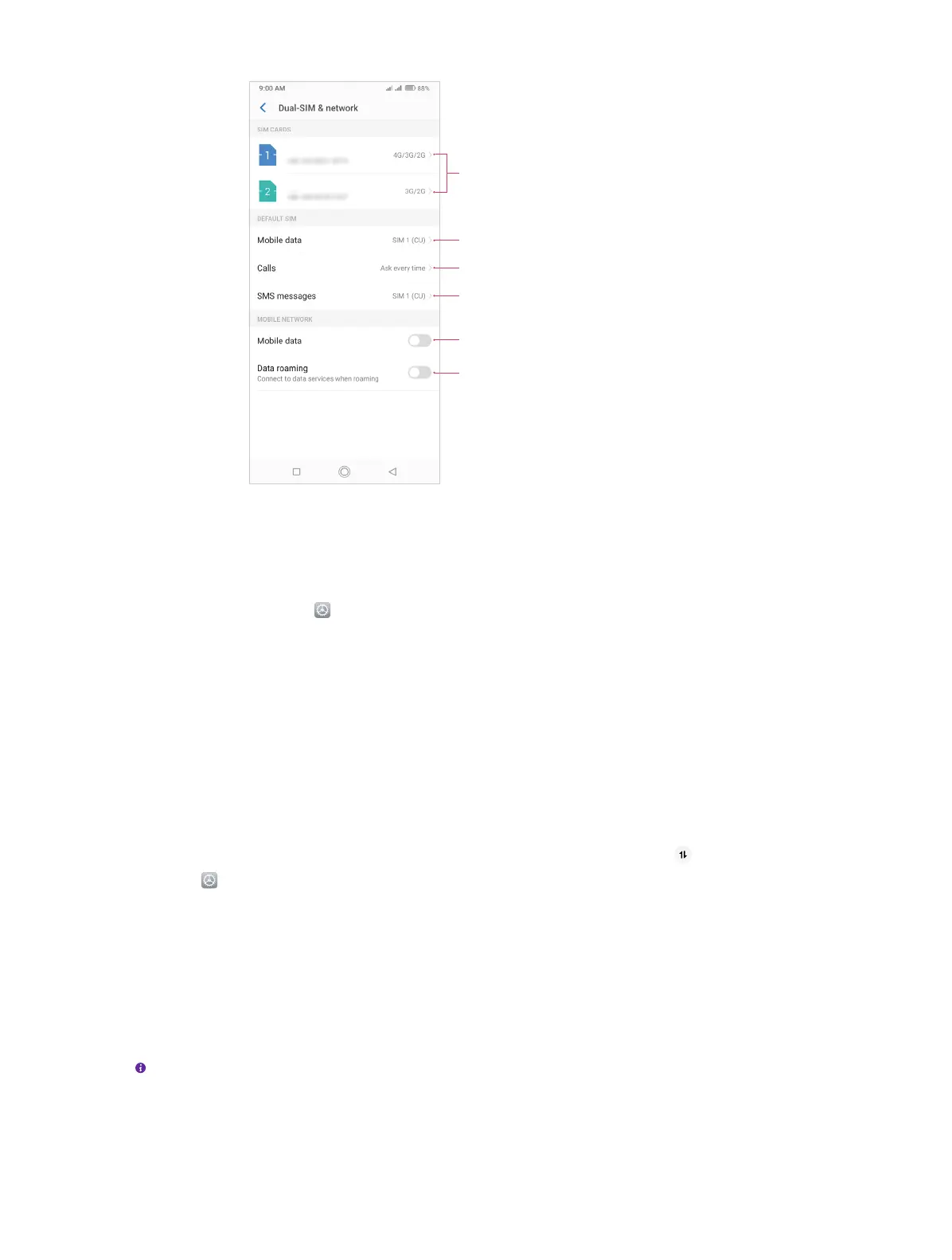 • Go to Settings > Dual-SIM & network, and switch on Mobile data.
