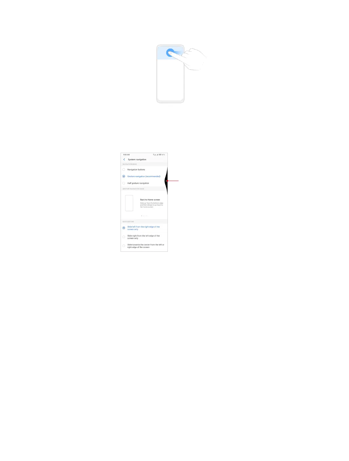 • Back gesture: You can tap Back button to go back to the previous screen.