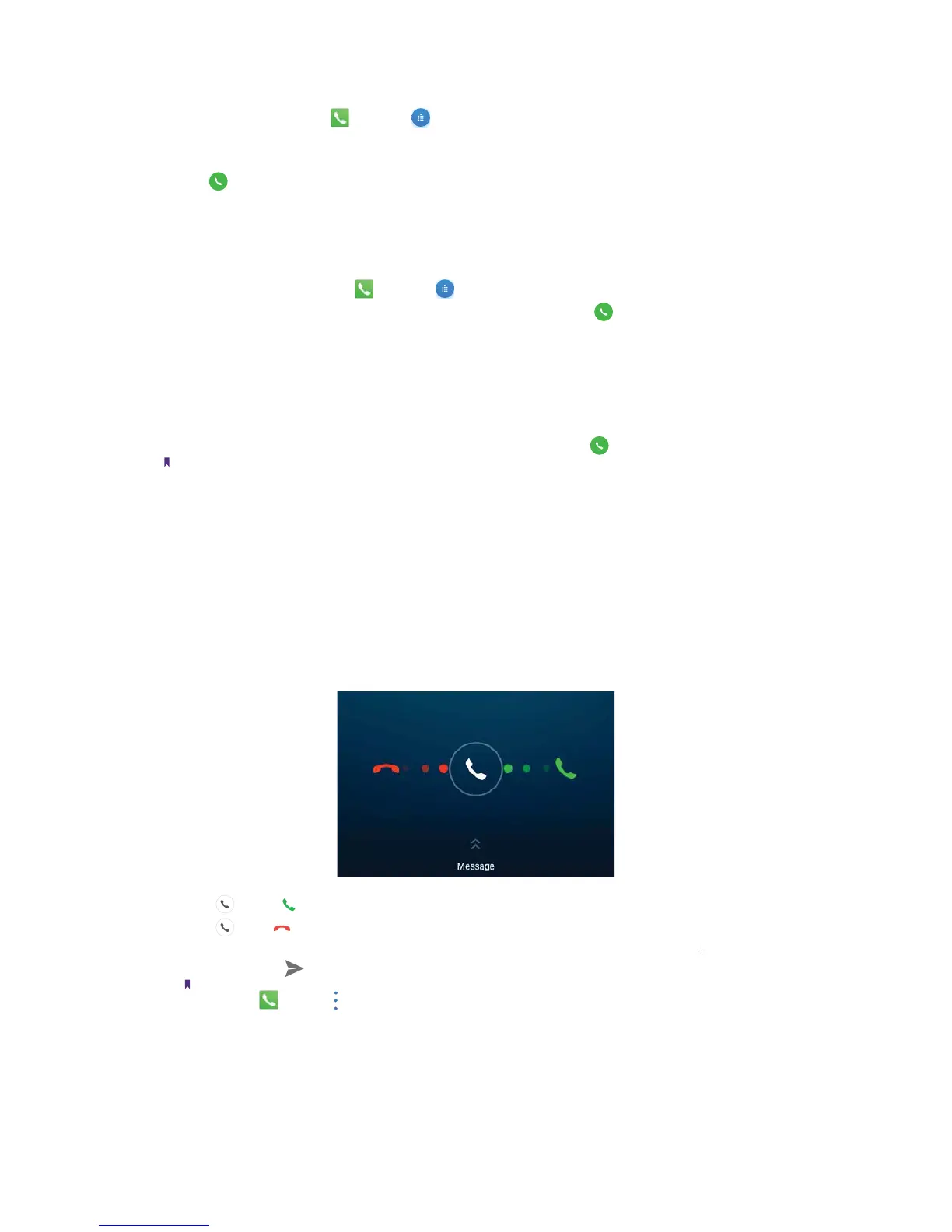 • Slide up Message to reject the call and send SMS. You can choose a quick response or tap