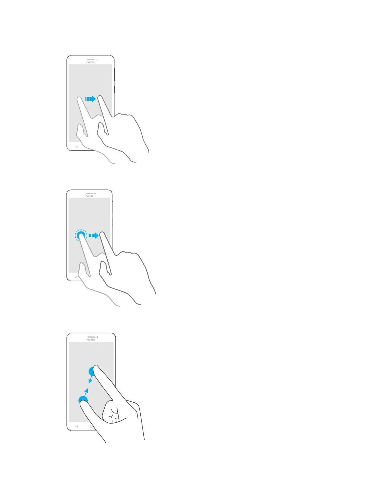 Swipe: Place your finger on the screen, and drag your finger to the direction you want. For example, in the