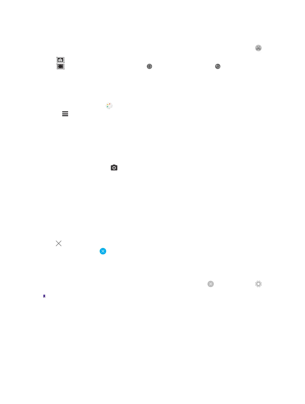 • Tap and choose the area you need, then tap to save the screen shot, or tap to cancel.