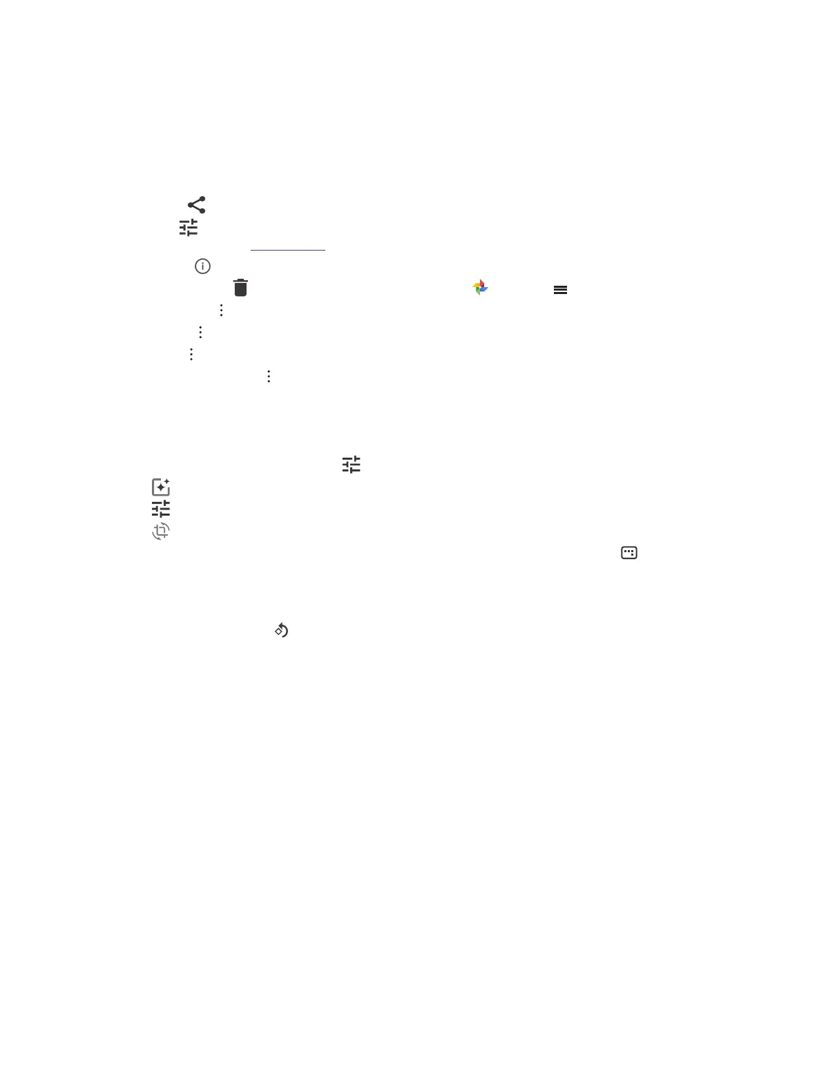 • Move to trash: Tap to move the photo to trash. You can tap Photos -> -> Trash to view it.