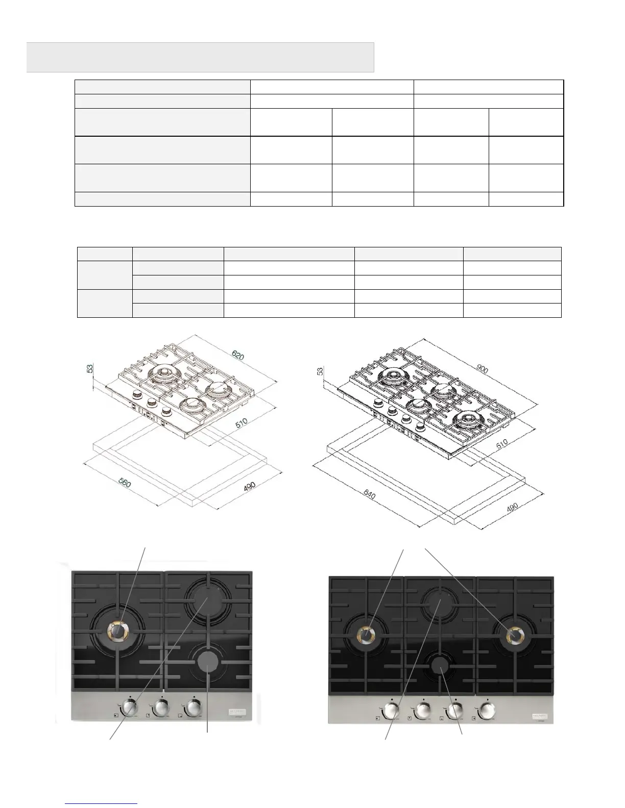 Hob size 510 900 58+48