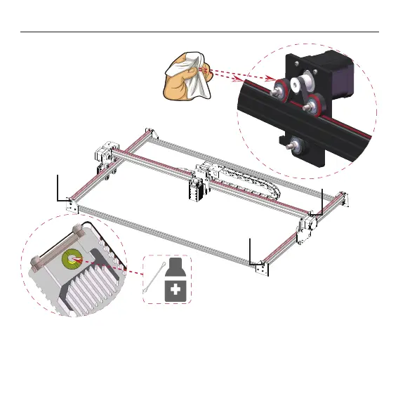 经过一段时间后,皮带可能会老化和松弛,导致雕刻 图像变形。你可以用螺丝刀和内六角扳手来调整
