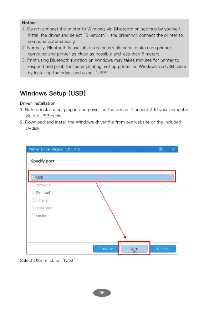 respond and print, for faster printing, set up printer on Windows via USB cable